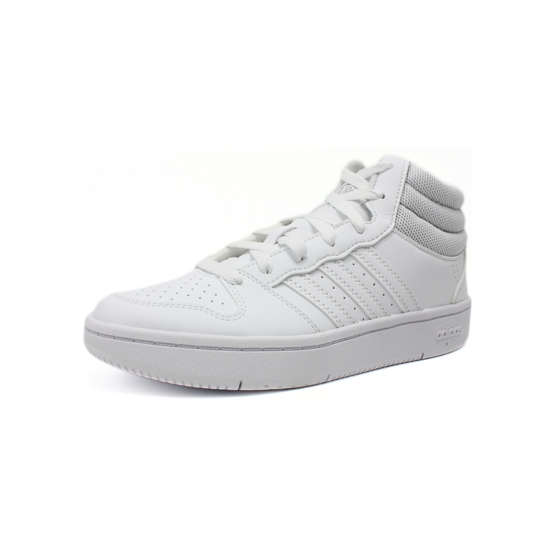 Adidas de hombre estilo urbano tipo bota, en color blanco. Fabricada en material sintético con acabado liso y perforaciones para mejor ventilación. Cuenta con caña media acolchada que brinda mayor soporte al tobillo y una suela de goma resistente que ofrece buena estabilidad y comodidad. Ideal para uso diario y looks casuales con estilo deportivo.
