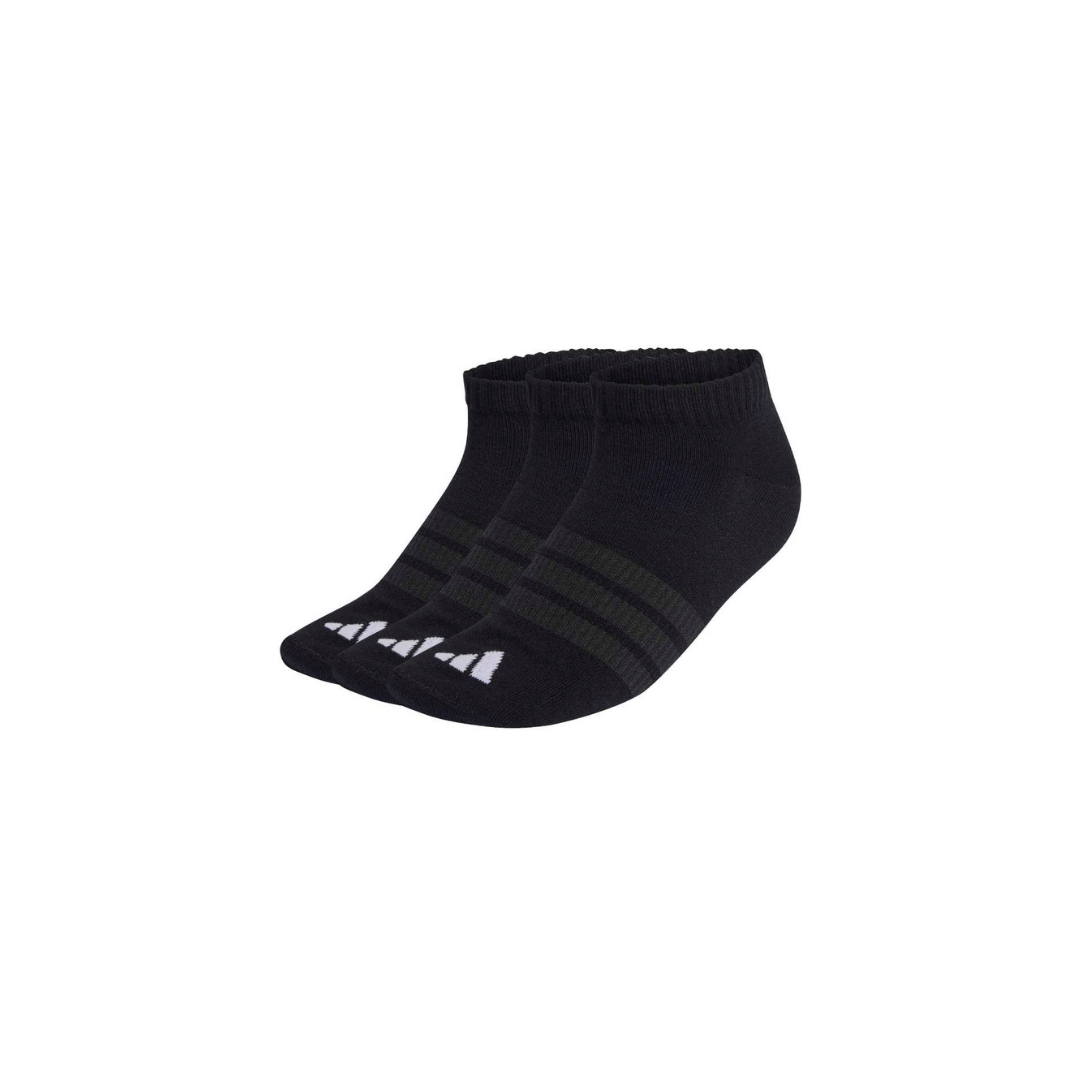 Pack de medias deportivas de caña baja, ideales para entrenamiento, running o uso diario. Confeccionadas en tejido suave y respirable, brindan ajuste cómodo, buena sujeción y una pisada confortable durante todo el día. Cuentan con refuerzo en puntera y talón y el logo adidas en contraste. Su color negro las hace prácticas, versátiles y fáciles de combinar con cualquier calzado deportivo.