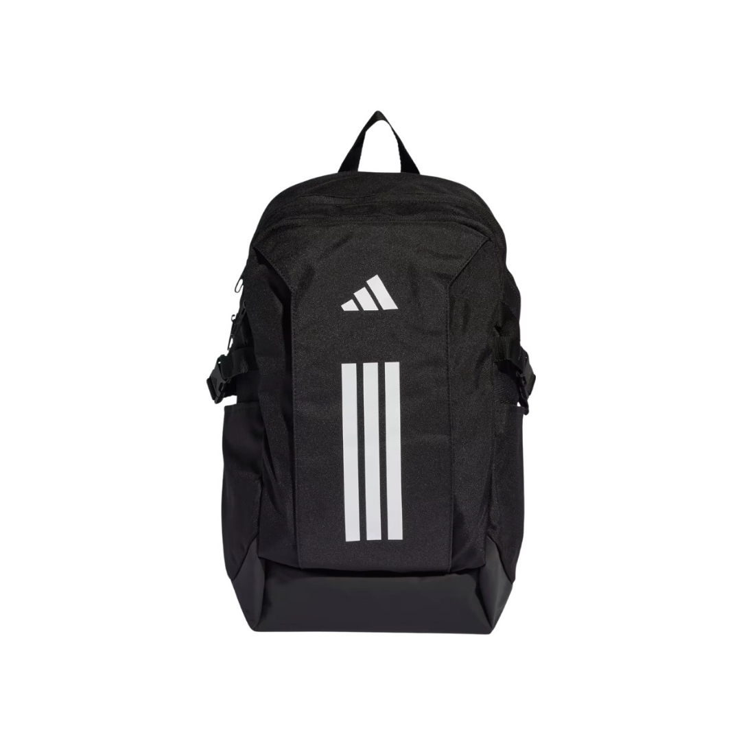 Mochila de diseño deportivo y funcional, ideal para uso diario, estudio o entrenamiento. Confeccionada en material resistente, cuenta con compartimento principal amplio, bolsillos laterales, base reforzada para mayor durabilidad y espalda acolchada con tirantes regulables que brindan comodidad al transportar. Su diseño en color negro con las clásicas tres tiras adidas en el frente aporta un look moderno, práctico y versátil.