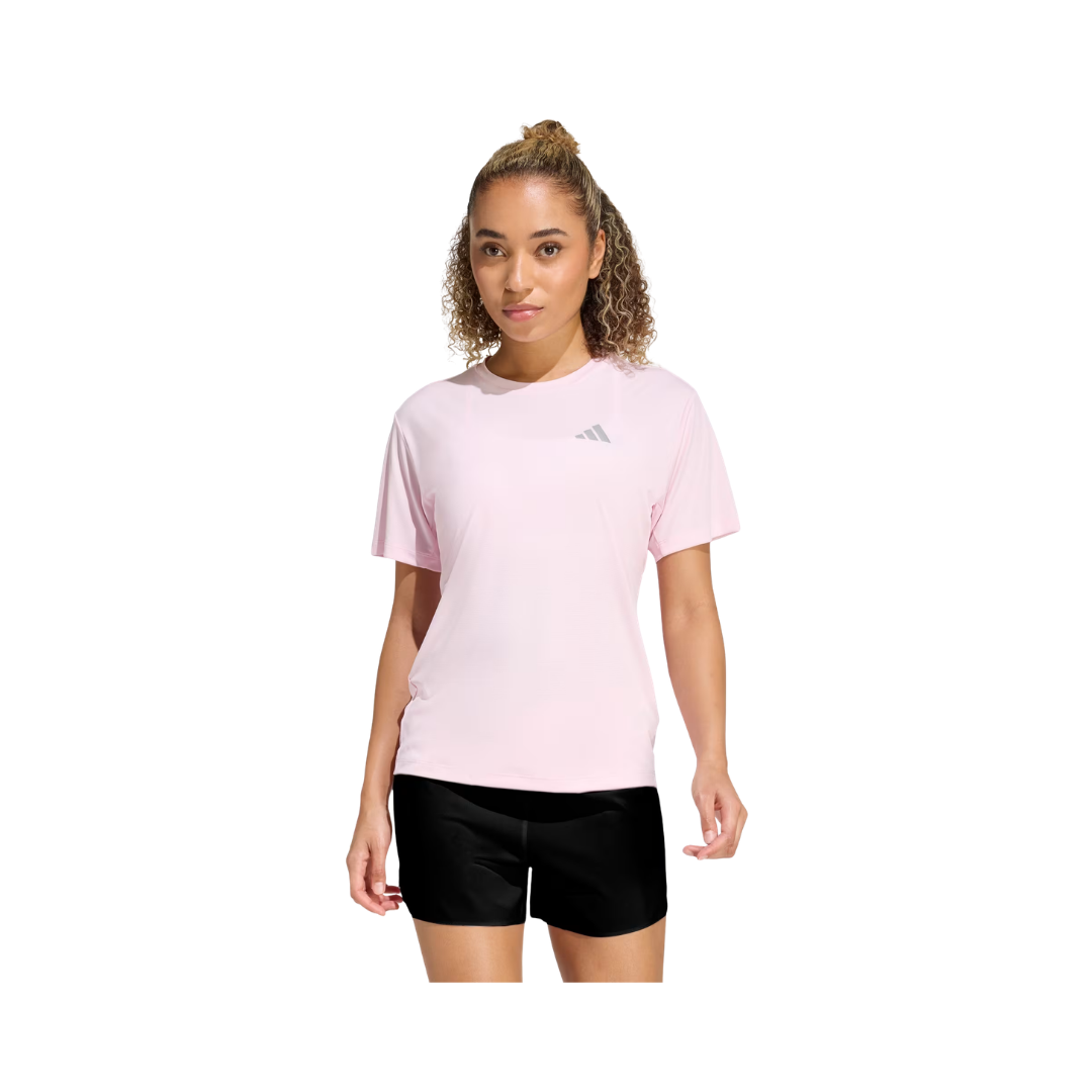 Remera deportiva de diseño liviano y femenino, ideal para entrenamiento o uso diario. Confeccionada en tejido suave y respirable, brinda un calce cómodo que acompaña el movimiento. Cuenta con cuello redondo, mangas cortas y logo adidas discreto en el pecho, manteniendo un estilo simple y funcional. Su tono rosa claro aporta un look fresco, moderno y fácil de combinar con outfits deportivos.