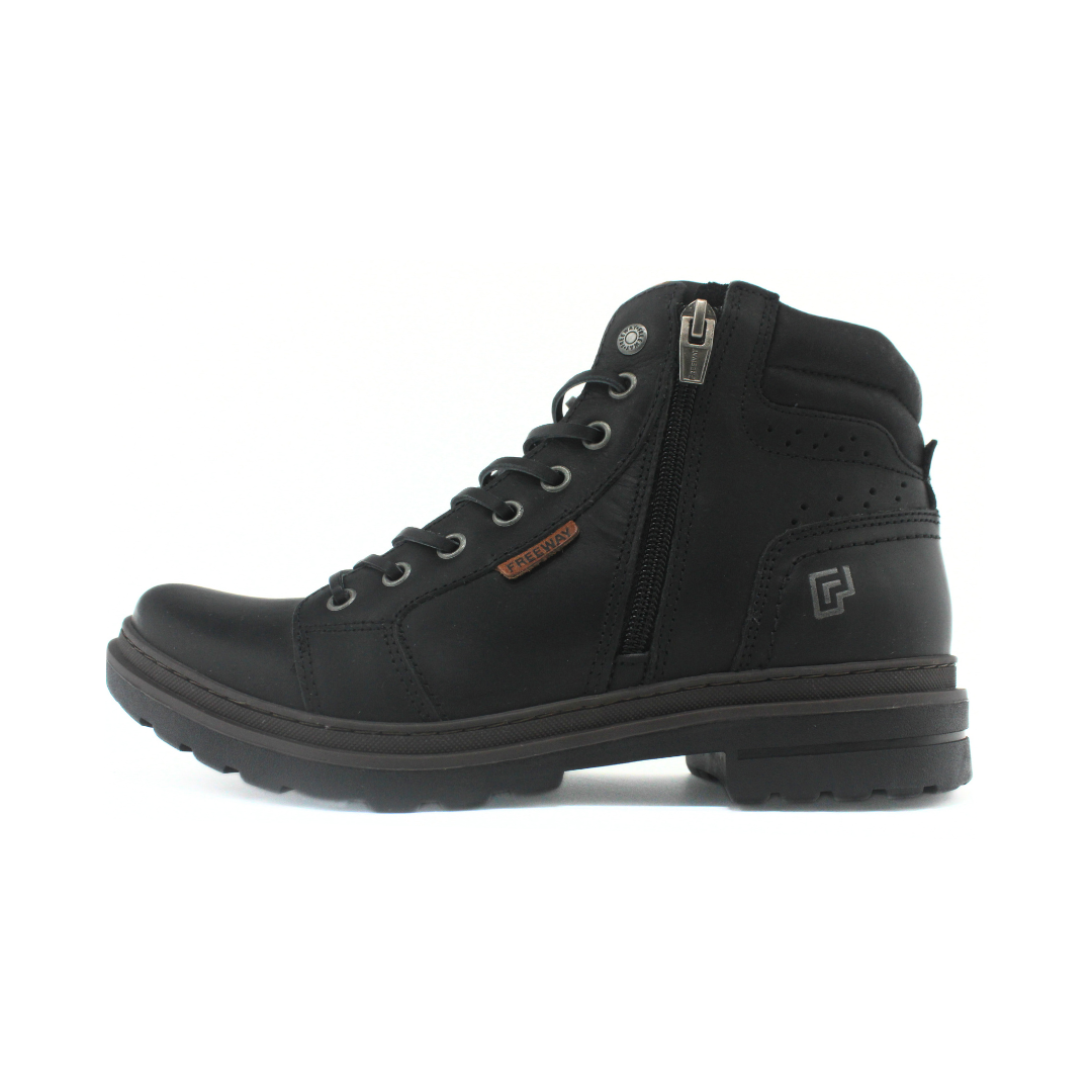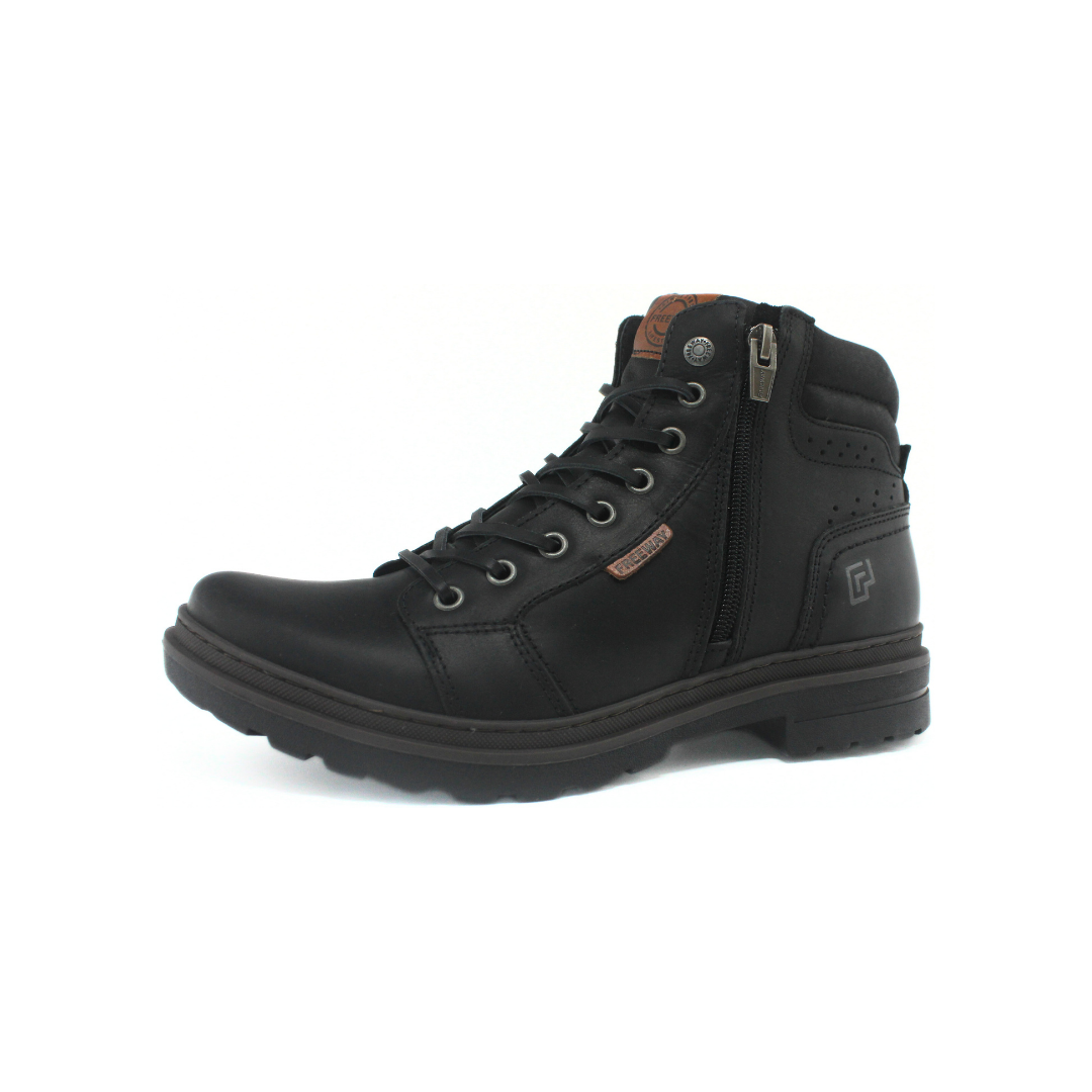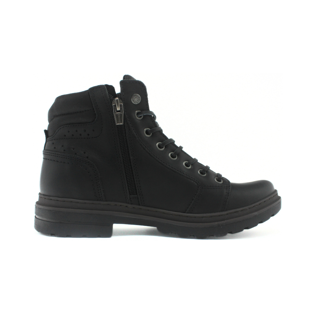 Bota de caña media con un diseño robusto y terminaciones prolijas. La capellada presenta una textura suave con detalles de costuras visibles que acompañan la forma del modelo. Incorpora cordones frontales y un cierre lateral que facilita el calce sin perder estética. El cuello acolchado aporta comodidad, mientras que la suela de perfil consistente completa un estilo firme y equilibrado. Un modelo práctico para el día a día, disponible en tonos clásicos como negro, suela y chocolate.
