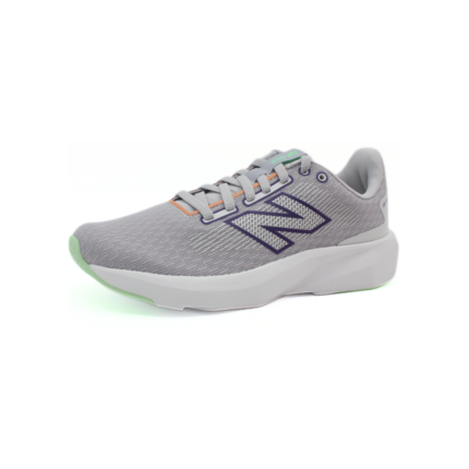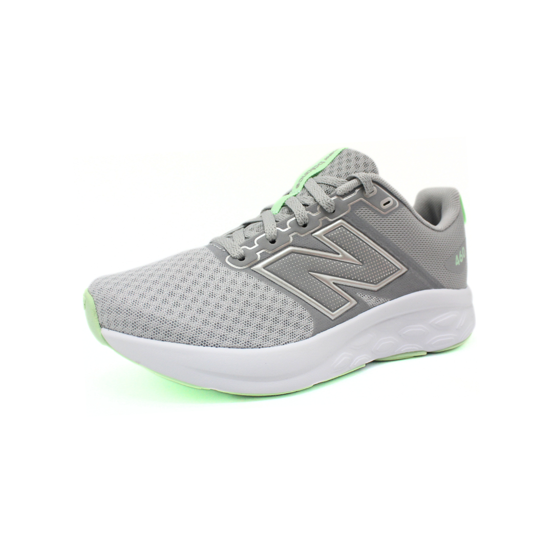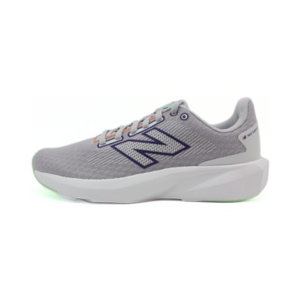 Deportivo New Balance de dama en tonos gris con detalles en verde. Su capellada de malla liviana brinda buena ventilación y comodidad, mientras que la suela de gran espesor ofrece amortiguación y estabilidad en cada pisada. Ideal para running, caminatas o uso diario, combinando confort y un diseño deportivo moderno.