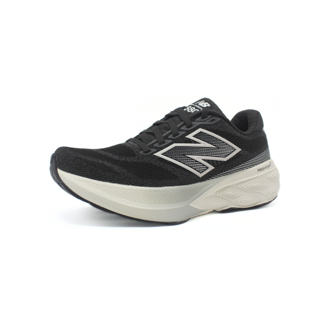 Deportivo New Balance de dama en color negro con detalles claros. Cuenta con capellada de malla respirable que brinda ligereza y confort. Incorpora entresuela con tecnología Fresh Foam X, ofreciendo excelente amortiguación y estabilidad en cada pisada. Ideal para running, caminatas o uso diario, combinando rendimiento y comodidad.