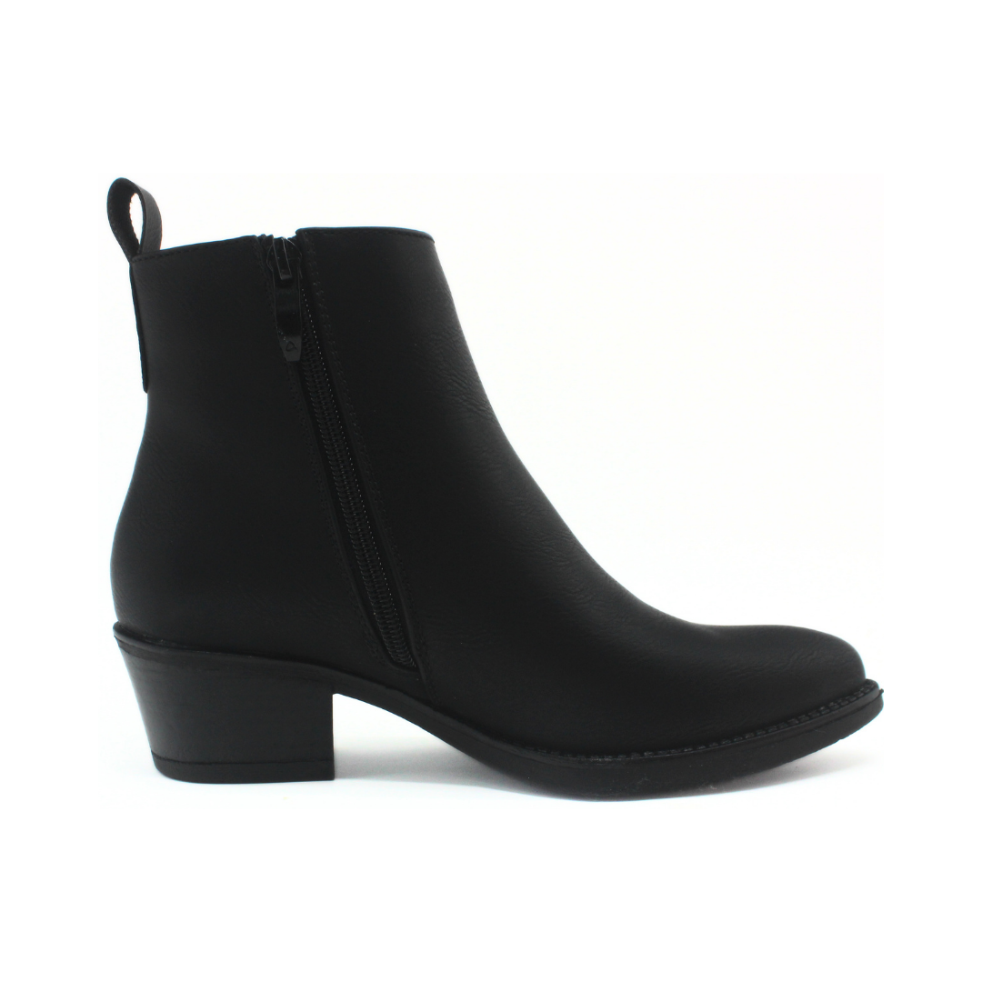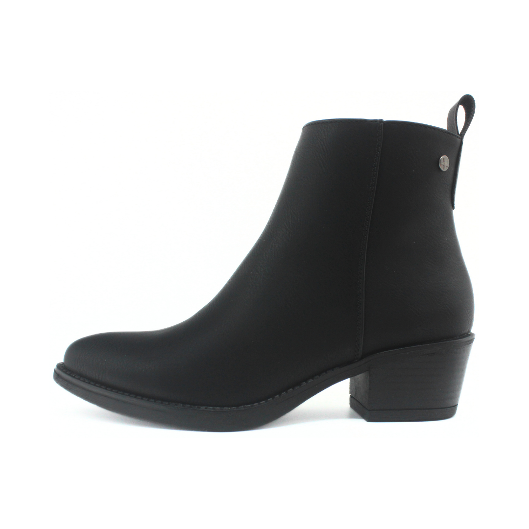 Botín de diseño clásico y elegante, ideal para el uso diario. Presenta taco medio que aporta comodidad y estabilidad, cierre lateral para un calce práctico y una silueta limpia que combina fácilmente con distintos estilos. Un modelo versátil, perfecto para looks urbanos o más formales.