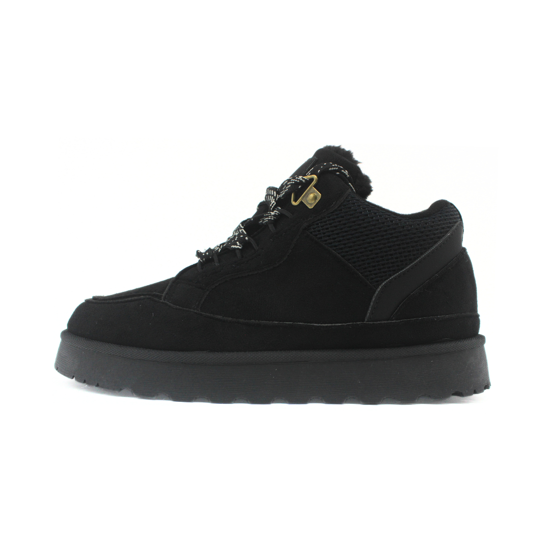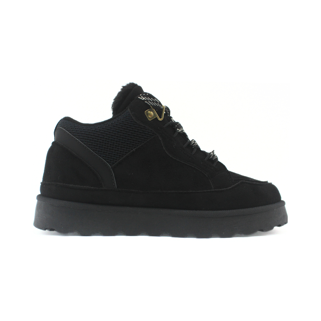 Bota deportiva de estilo urbano, ideal para los días fríos. Presenta caña baja con interior abrigado, cordones con herrajes metálicos que aseguran buen ajuste y una suela gruesa y antideslizante que brinda estabilidad y comodidad. Un modelo moderno y funcional, perfecto para looks casuales y uso diario.