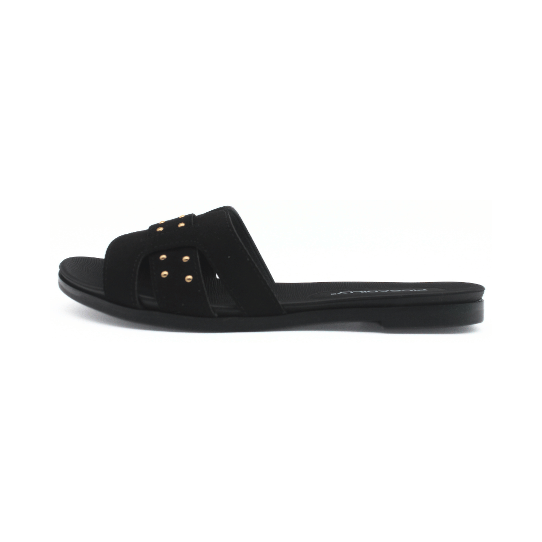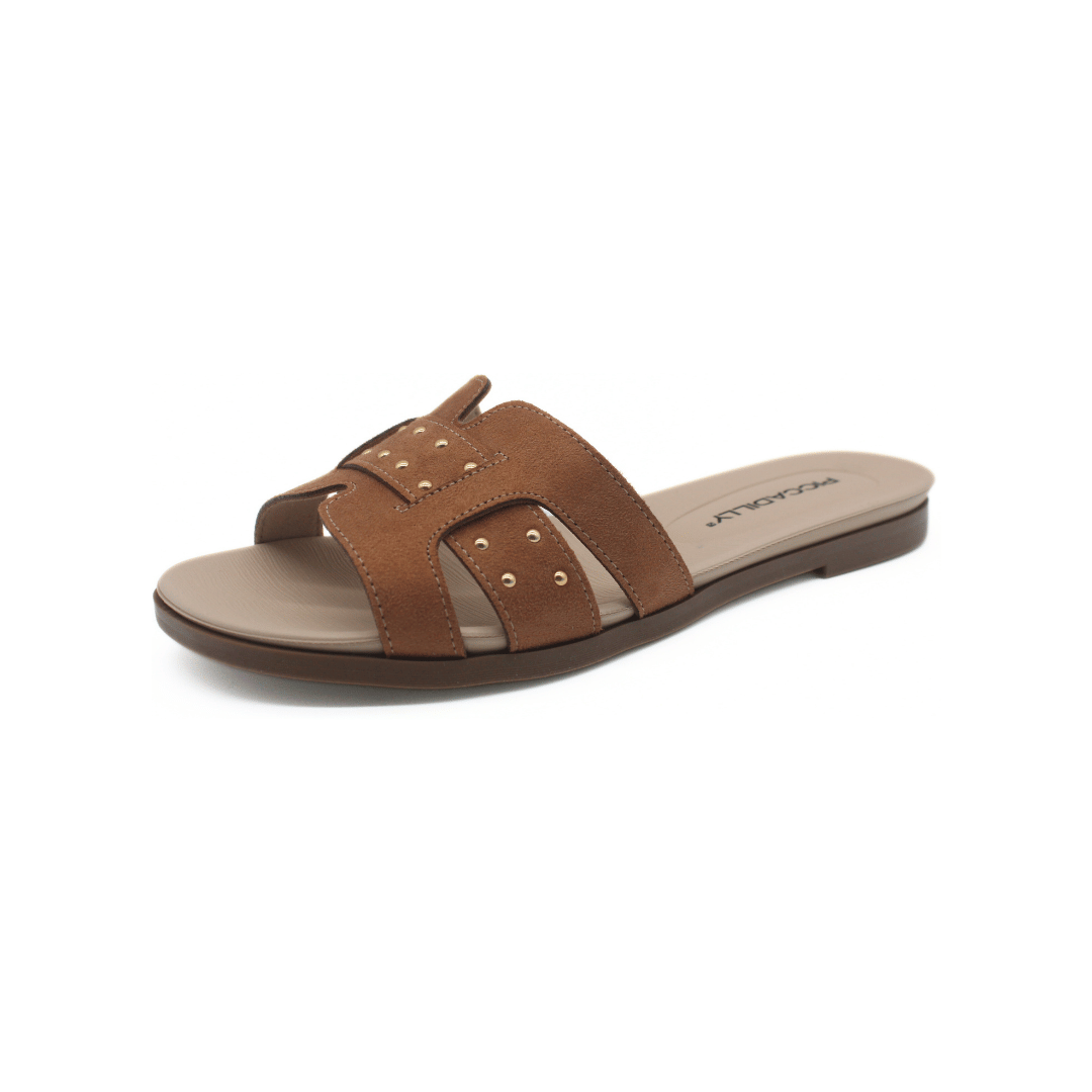Versátil y con estilo, esta sandalia de la marca Piccadilly presenta una faja ancha en el empeine adornada con tachas metálicas que le dan un toque moderno.