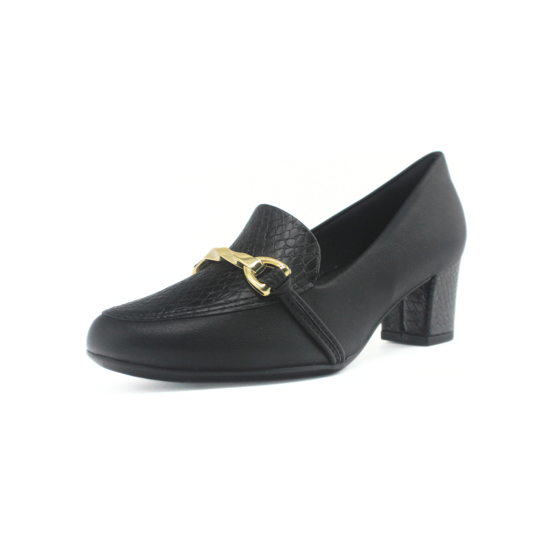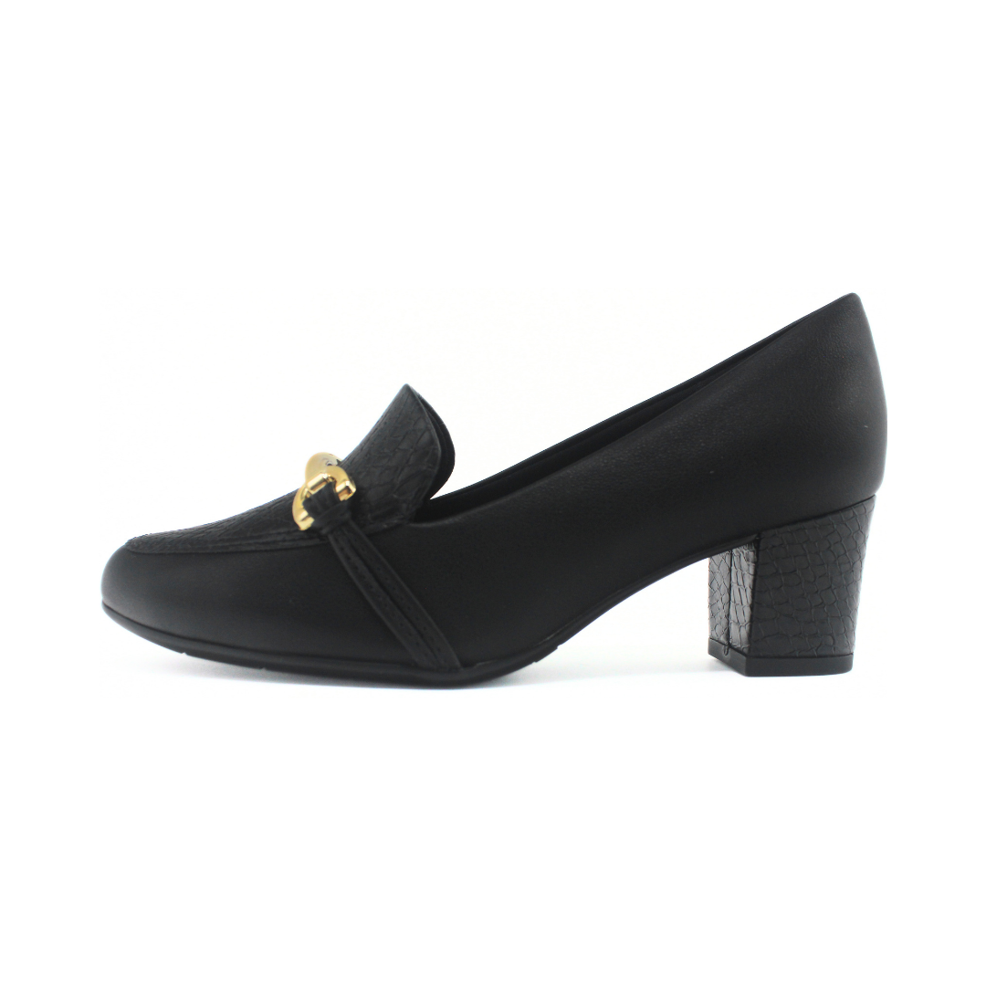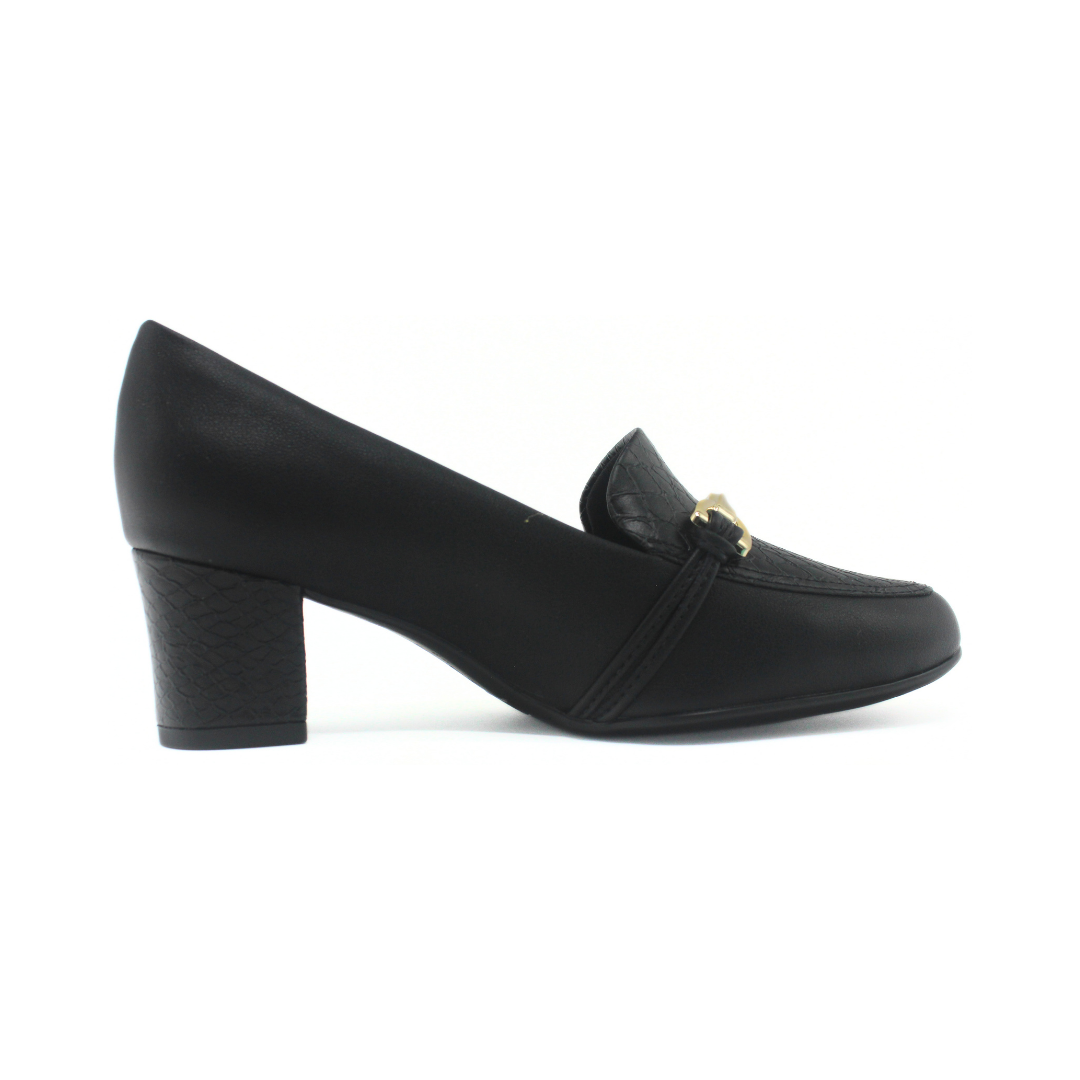 Zapato de estilo clásico y sofisticado, ideal para el uso diario o laboral. Presenta taco medio que brinda comodidad y estabilidad, detalle metálico en el empeine que aporta un toque elegante y una silueta cómoda que acompaña todo el día. Un modelo versátil, fácil de combinar con looks formales o de oficina.