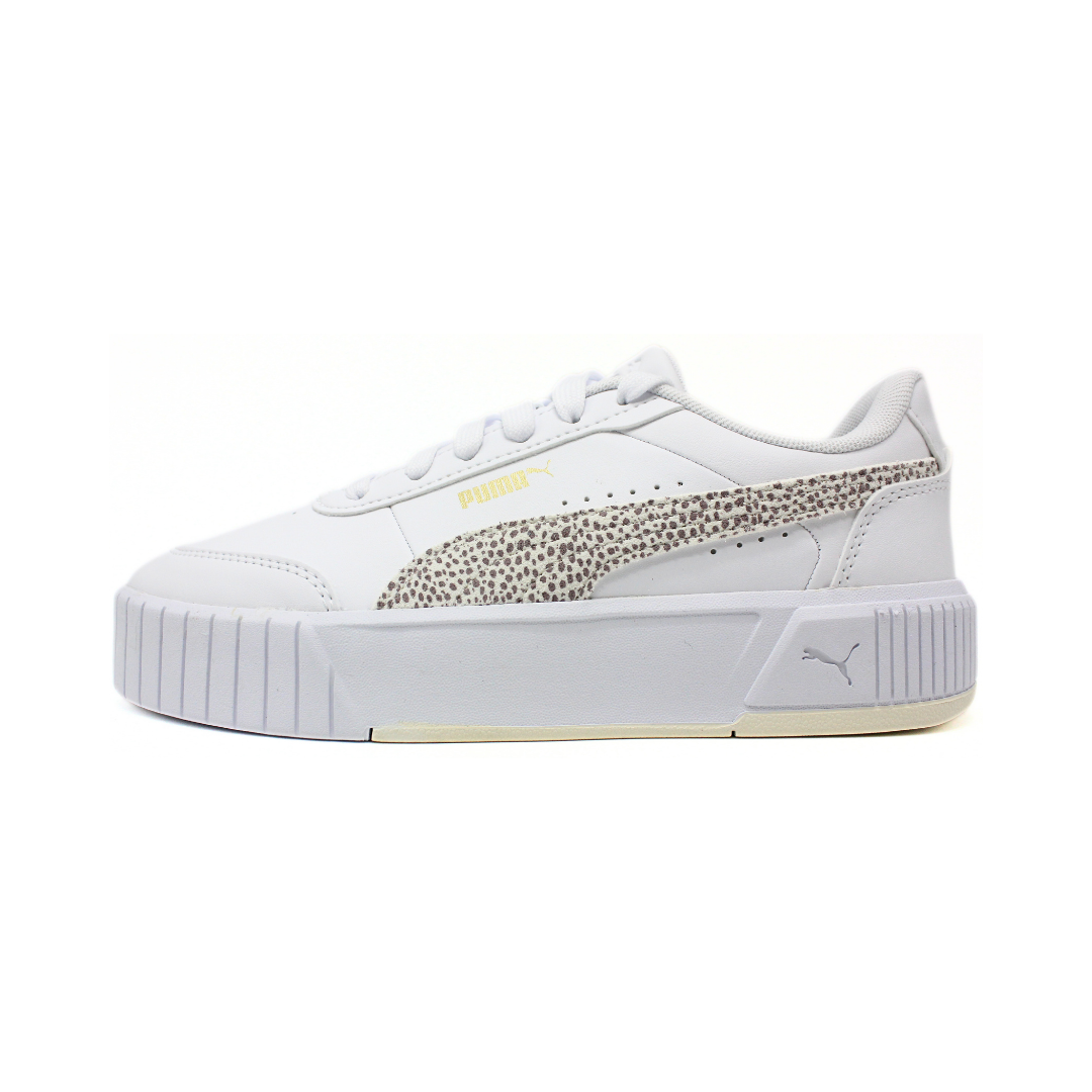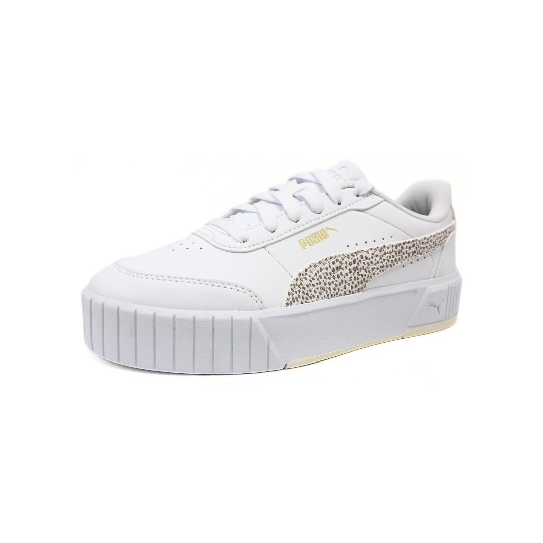Deportivo urbano en color blanco con una silueta moderna y detalles que marcan estilo. La capellada presenta un acabado liso y prolijo, acompañada por una franja lateral con textura animal print que suma un toque distintivo y actual. La suela tipo plataforma, de perfil alto y líneas marcadas, realza el diseño y aporta una presencia definida. Los cordones al tono y los pequeños detalles de marca completan un modelo versátil, ideal para looks casuales y urbanos con personalidad.
