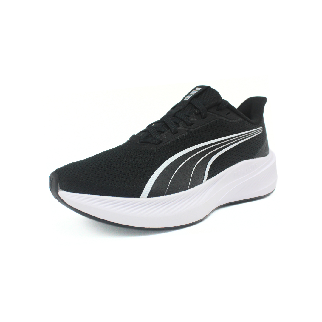 Deportivo Puma de dama en color negro con logo en blanco. Presenta capellada de malla liviana y respirable que brinda comodidad durante todo el día. Incorpora una suela de gran espesor, liviana y flexible, que ofrece buena amortiguación y estabilidad. Ideal para entrenar, caminar o usar a diario con un look deportivo.