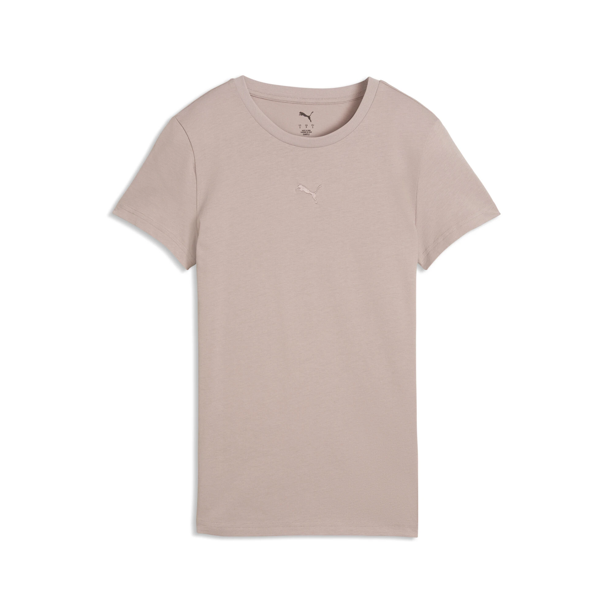 Remera de manga corta en tono nude con un diseño simple y delicado. Presenta un corte clásico que acompaña la silueta de forma natural y un cuello redondo prolijo. El pequeño logo Puma bordado en el frente suma un detalle sutil que mantiene la estética minimalista del modelo. El tejido de textura suave ofrece una sensación cómoda para el uso diario. Una prenda versátil, fácil de combinar y perfecta para looks urbanos o deportivos relajados.