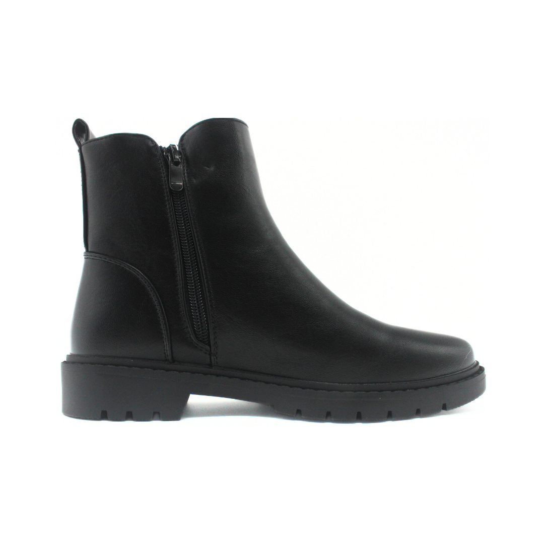 Bota con un diseño de caña media y líneas simples que aportan una estética moderna y prolija. La capellada de textura uniforme se combina con un cierre lateral que facilita el calce y mantiene una silueta limpia. La suela de perfil medio con leve dibujo suma presencia y acompaña el uso diario con comodidad. Un modelo versátil, ideal para completar looks urbanos de temporada con un toque sobrio y actual.