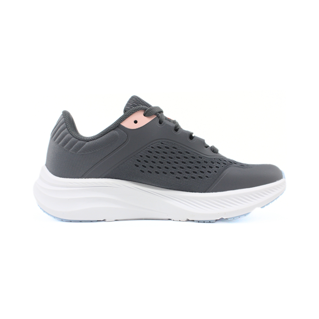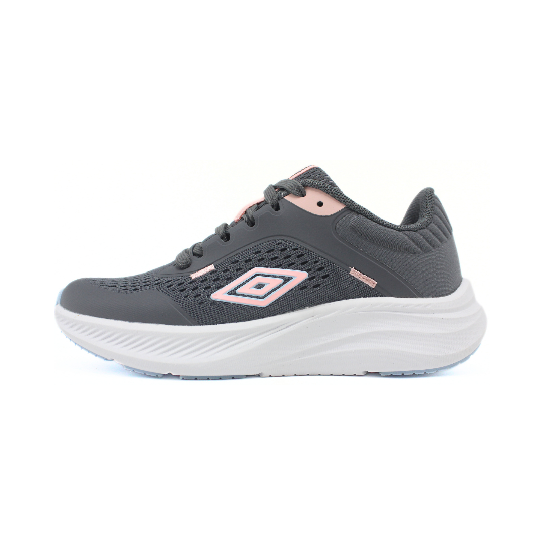 Deportivo Umbro de dama en color gris con detalles en rosa. Cuenta con capellada de malla respirable combinada con refuerzos sintéticos que brindan comodidad y durabilidad. Su suela de gran espesor es liviana y ofrece buena amortiguación y estabilidad. Ideal para entrenamientos, caminatas o uso diario.