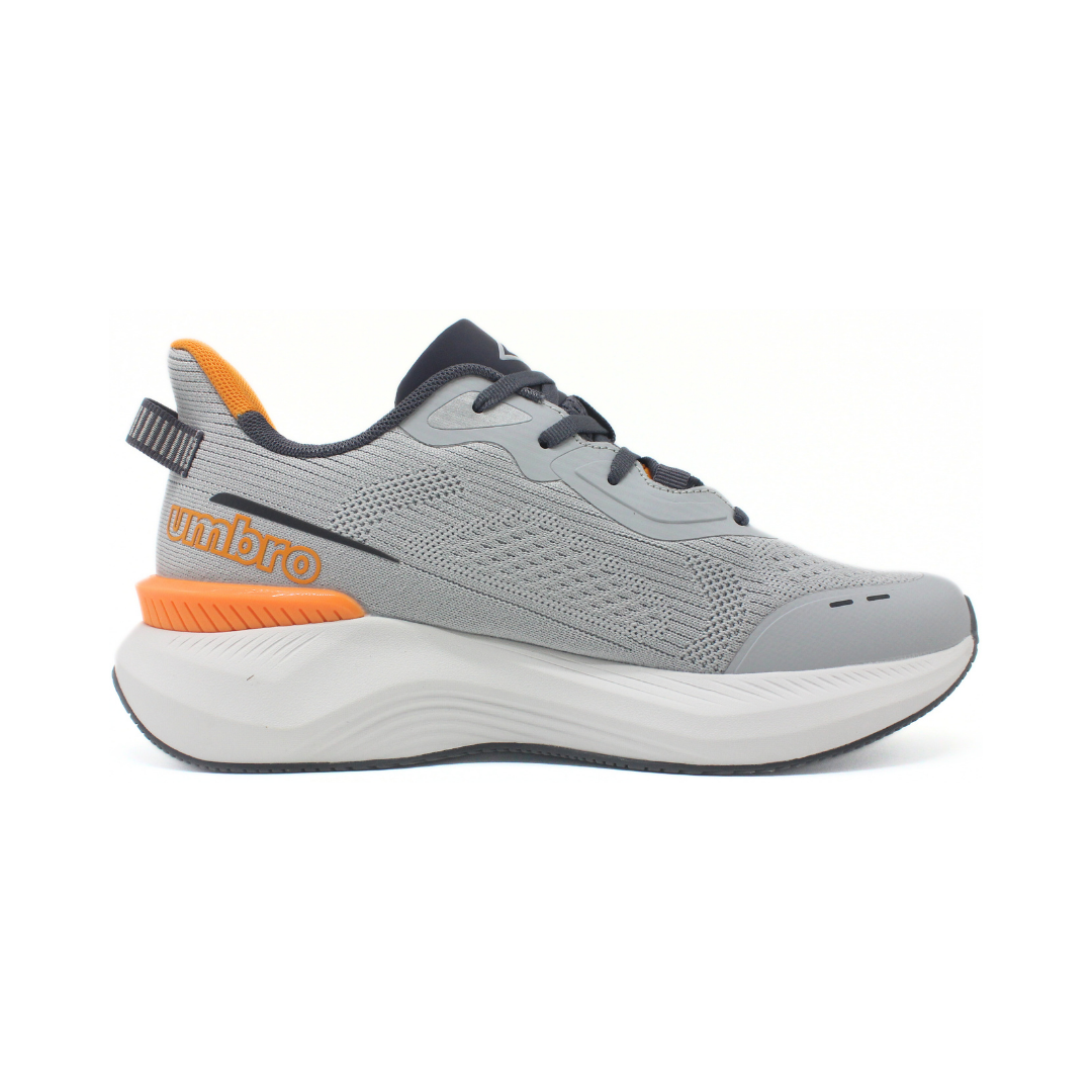 Deportivo en tonos gris y naranja, con una capellada tejida que acompaña el movimiento y mantiene un diseño uniforme. Las capas sintéticas en la zona del cordón y la puntera aportan estructura visual sin recargar. La suela de volumen medio crea una pisada cómoda y dinámica, con un perfil que le da carácter al modelo. El talón incluye un refuerzo en color naranja que suma un detalle distintivo dentro de una estética moderna y urbana. Ideal para rutinas activas y uso diario.