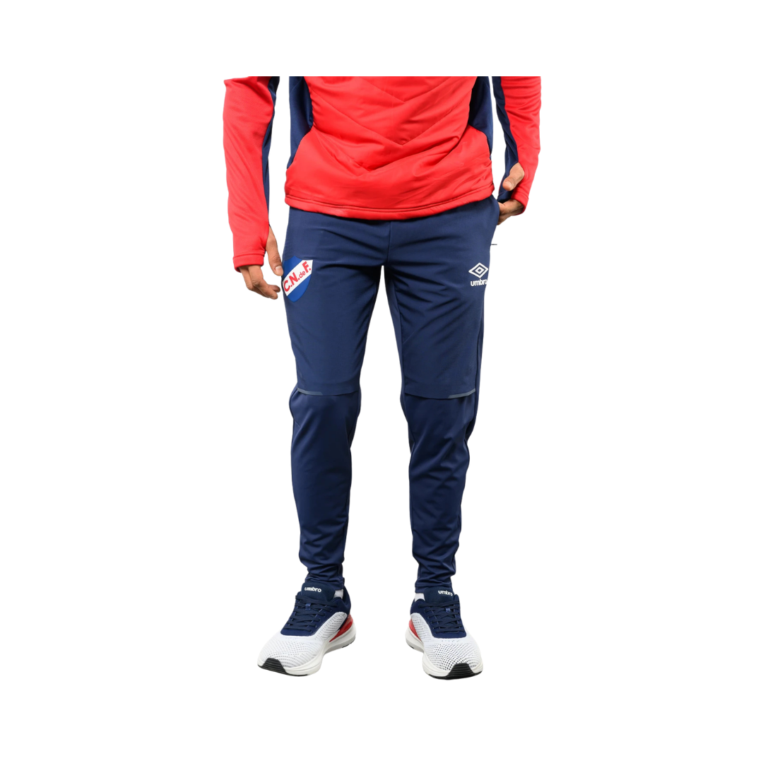 Pantalón deportivo oficial de Nacional, ideal para entrenamiento y uso diario. Presenta un diseño moderno de calce ajustado, confeccionado en tejido liviano y flexible que acompaña el movimiento. Cuenta con cintura elástica con cordón, bolsillos laterales, terminación entallada en piernas y detalles funcionales en la zona de las rodillas. Luce el escudo de Nacional y logo Umbro, en color azul marino, manteniendo un look deportivo y profesional.