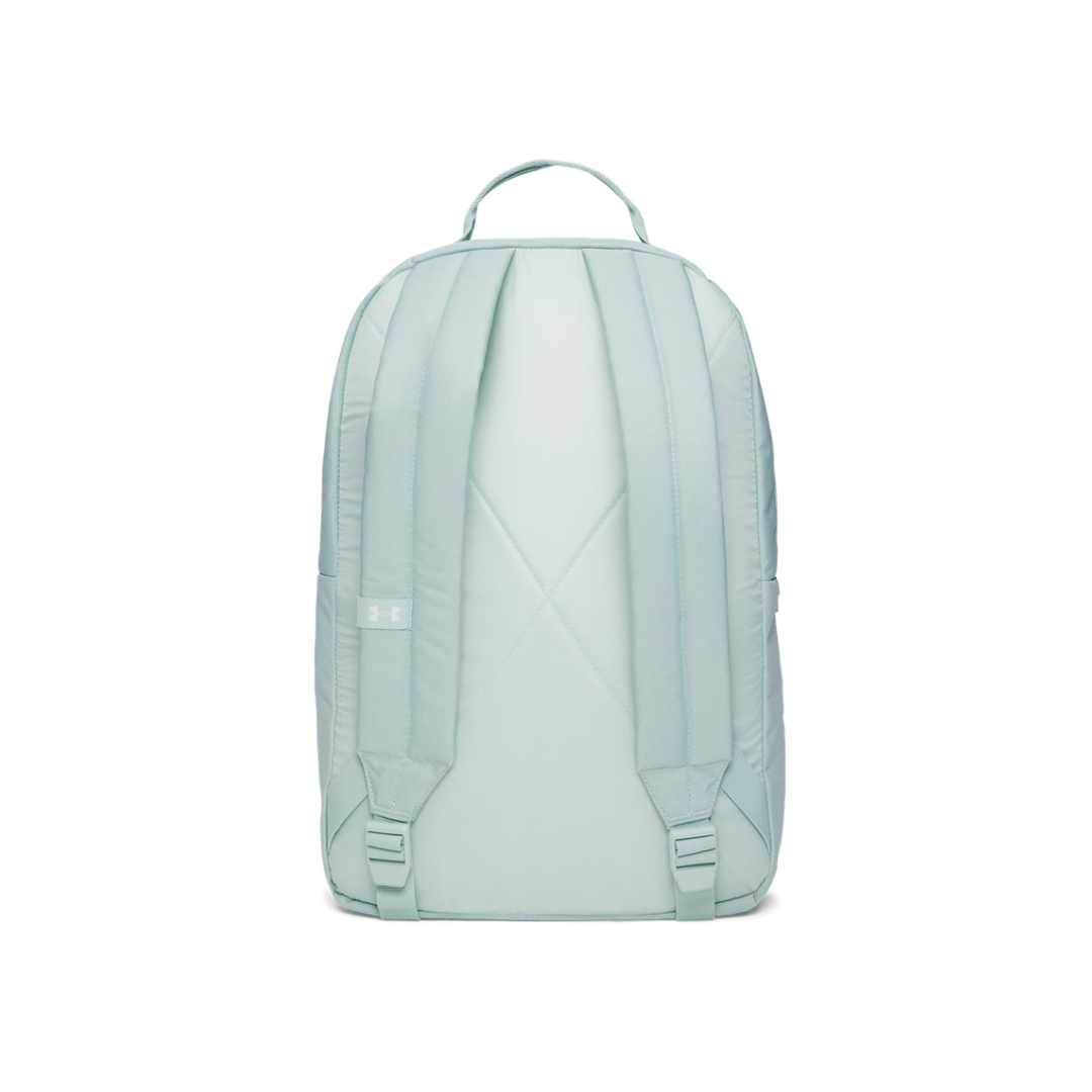 Mochila en color verde agua con un diseño limpio y moderno. Presenta un compartimento principal amplio con apertura superior y espacio interno para cuadernos, libros o accesorios de uso diario. Incluye un bolsillo frontal con cierre para objetos de acceso rápido. Las tiras acolchadas y ajustables ofrecen comodidad al llevarla, mientras que el logo Under Armour en el frente aporta un detalle distintivo. Un modelo práctico y versátil para estudio, trabajo o actividades cotidianas.