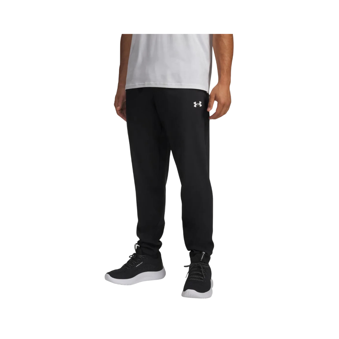 Pantalón deportivo en color negro con un diseño simple y cómodo para el uso diario. Presenta cintura elastizada y una caída recta que acompaña bien el movimiento. El logo Under Armour aparece en el lateral, aportando un detalle moderno sin recargar el modelo. El tejido suave y de textura uniforme lo convierte en una opción práctica para entrenamiento, horas de gimnasio o looks casuales.